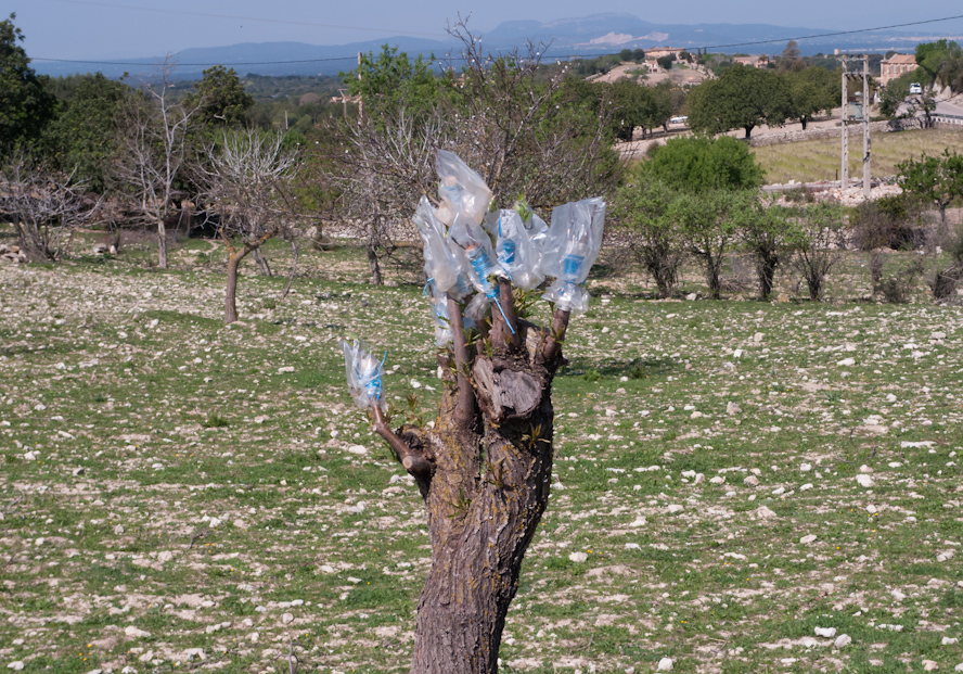 Take the fine art of grafting as an example. There would be no olive oil in Mallorca, or anywhere else for that matter, if olive trees would not have been cultivated by the art of grafting, at some time in their existence. Or wine. Or tomatoes. Or potatoes. Vines have to be grafted according to the variety wished for, just as fruit trees have to be grafted if a particular species of fruit is wanted, like in the photo here. In Mallorca, it is not uncommon to graft plums or peaches on to an almond tree. The almond tree is particularly prone to act as a mother host for any variety of fruit and sometimes you can find three different fruit varieties on one single almond tree. As long as you know what you are doing, of course.