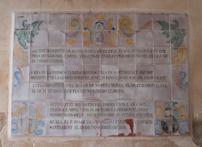 The Monestir de Santa María de La Real just to the North of Palma was founded in 1235 by designation of King Jaume I, the Conquistador. From 1265 to 1274, Ramon Llull lived and worked there, studying Latin, philosophy, theology and the law. Here, he wrote his first books, Compendi de la lògica d’Algatzell and Llibre de Contemplació en Déu. These treaties were written in Arabic and only later translated into Catalan. I understand that both manuscripts form part of the library that Llull bequeathed to La Real. I am not sure if or how one can gain access to the Bibliotequa de La Real, said to be one of the most emminent ones on the island but I am sure one could find out.