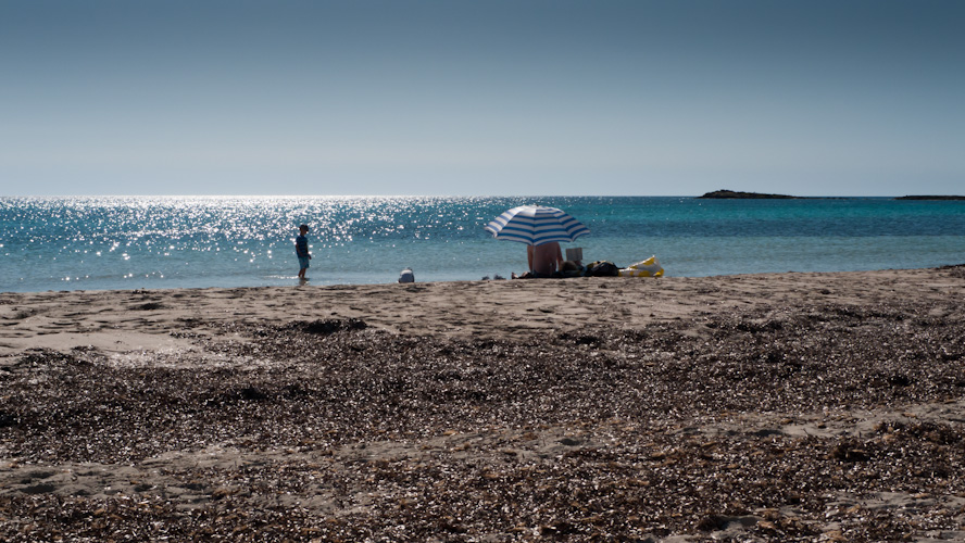 I don’t like going to the beaches in the Summer. They are too crowded, too noisy, too perfectly equipped, for my liking, and, in general, less attractive to me the more popular they are to others. Whilst I agree that you won’t find a nicer beach on the island than Platja d’es Trenc, one must admit that in June, July, August and September, all the plastic sunbeds, the melon vendors, the yachts anchoring off-shore, the thousands of people and their hectic beach-life activities just put one off. I either go there early in the morning before the masses get out of bed, or late in the afternoon when the hordes pack up and return for their half-board supper in their hotels. Or else, I go to a beach where there is none of the above and enjoy the peace and quiet and primarily, the unspoilt landscape and virgin nature. You can still find virgin beaches here on the island. I’ve been to three of them in the last fortnight and there were but a handful of visitors on either of them. Even in the Summer, you won’t find more than three dozen people there on a stretch of 500 metres. I can live with that.