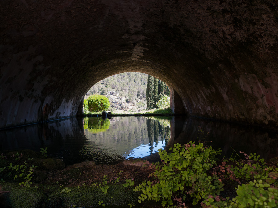 Alfabia is a good place to study the Moorish ways of water management. The estate goes back to an Islamic settlement near the Font d’Alfabia, a water source in the Puig d’Alfabia mountain, from where it was channeled through watercourses to storage reservoirs near the residential quarters, and from there through canals and ducts to the fields and terraces of plantation areas and gardens.