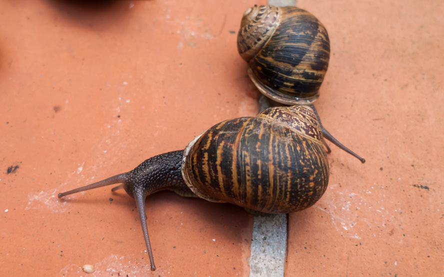 We recently had an invasion of snails in our patio garden, much to the delight of our carniverous tortoise (Manouria emys). We catch the snails for him as he is too slow to outpace them, would you believe it?