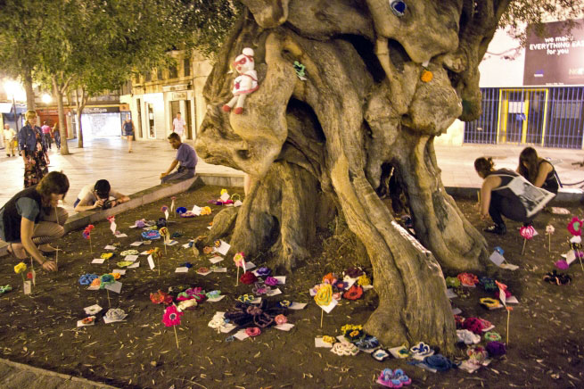 A few days ago, it was Palma’s turn. Under the cover of darkness, a good dozen female guerrilla knitters planted 200 flowers knitted or crocheted in wool under the olive tree in Plaça Cort. I wanted to see their Knitivism street art and rushed to Palma on Friday but, alas, the law-and-order brigade or whoever else had already removed the surely inoffensive adornments. I find this undertaking quite poetical or lyrical. As it happens, the 14th Festival de Poesia de la Mediterrània is in full swing on the island but, the poetic visual suitability of the knitted garden in front of Palma’s Ajuntament seems to have escaped the mandarins in Palma. A shame, really.