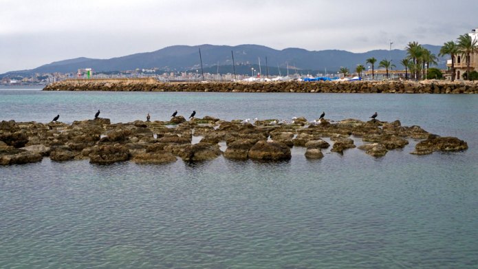 Even though El Portitxol is near the capital city and really part of it, it seems worlds apart. If you go there early in the morning or late in the evening, it seems rather sleepy and rural. You can hear and sense the busy life going on in a distance but here, time seems to pass much slower. In fact, it is so quiet and laid back here that some wildlife can be found prospering here, such as the Corb Marí Emplomallat (Common Shag). A rather large flock gathers every late afternoon on the low rocks between Club Nàutic Portitxol and the Club Nàutic Es Molinar.