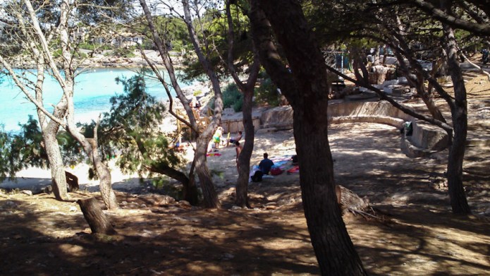 My advice would be to take it easy. Be wise. Put a straw hat on your head or some other cover whenever you go out. Drink plenty of liquid, preferably non-alcoholic. Put some sun cream lotion on, ideally with a higher than 35 factor. When at home, keep your persianers shut all day long and open the windows. If you must go to the beach, seek out a Cala where you will have plenty of natural tree shade, such as in my photo, taken in s’Arenal Petit, in Portocolom. Don’t sit and get your skin burned; you will suffer from it. If you do get sun burned, apply some juice from a freshly cut Aloe Vera plant, or rub your burned skin with some plain natural yoghurt.
