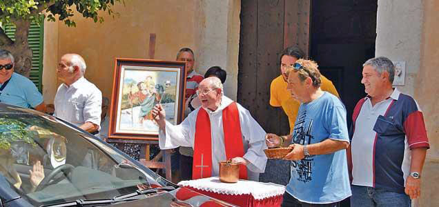 There are a few pueblos in Mallorca where this tradition is upheld, amongst others Felanitx, Biniali and Sant Joan, and of course Palma. A Beneïdes (blessing) of lorries, cars and motorbikes will take place next Saturday, July 7th, in Portocolom, the harbour town of Felanitx. The time will be 10h30. I am giving you a few days warning in case you would want to make your way to Portocolom. I am not sure about the date of similar blessings in Biniali, but last year it happened to be a week or two after Felanitx. I don’t know the reason for this divergence of dates. As far as I know, the official saint’s day is July 10th. The Saint Christopher blessings are usually officiated by a priest or someone similarly qualified.