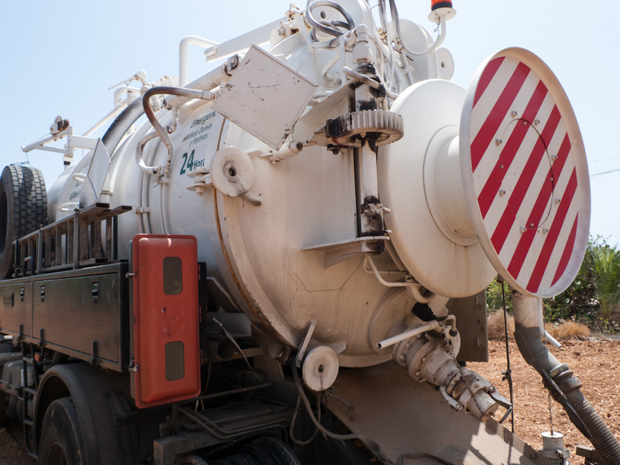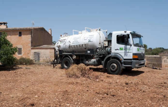 Yesterday, I was reporting on the pneumatic collection of household refuse in the island capital, Palma. In country properties up and down Mallorca there is a different problem, that of wastewater and its reclamation. In the countryside, you would normally not have a communal or municipal conveying system of ducts or channels to collect fecal waste. It is rather a matter of each one to his (or her) own. Country properties would have a private septic tank or pozo negro on their property, usually a construction of three inter-connected chambers with the last one allowing the waste liquid to flow or leak slowly through porous material or small holes. The non-liquid stuff hardens with time and fills up over the years. Friends of ours had the need to have their septic tank emptied yesterday and, luckily, the friendly set-up of Limpiezas Toni & Jaime S.L. was available and willing to come and do an emergency suck-away job. It took them less than 30 minutes to empty the full septic waste tank. I don’t know where they take the fecal waste matter but I suppose it will be to a municipal treatment facility. The charge was 120 € in case you should be interested.