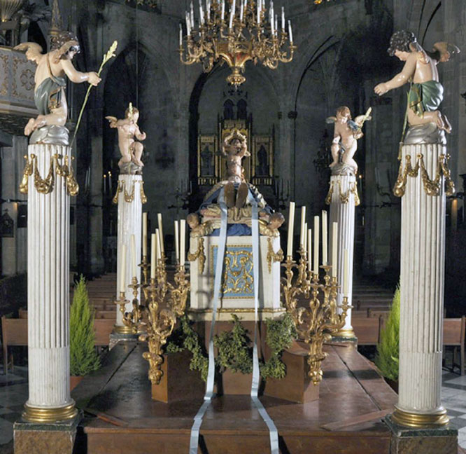 Tomorrow, August 15th, Catholic Spain celebrates the Festividad de la Mare de Déu d’Agost, a national holiday commemorating the ascension and assumption of the Virgin Mary. In  Mallorca, the Virgen Dormida will be on display in churches in Alaró, Algaïda, s’Arracó, Artà, Binissalem, Calvià, Campanet, Campos, Capdepera, Costitx, Felanitx, Fornalutx, Inca, Lloret de Vistalegre, Llubí, Manacor, Maria de la Salut, Montuïri, Muro, Petra, Pina, Sa Pobla, Porreres, Puigpunyent, Sant Joan, Santa Maria del Cami, Santanyí, Selva, Sencelles, Sineu, Sóller, Son Servera, Valldemossa and Palma, with twelve churches participating in the island capital, including the Cathedral. You don’t have to be particularly religiously minded to enjoy the festively decorated and sometimes pompously laid out Sleeping Virgin sculptures, often of Mediaeval origins. Most presentations will be on display in participating churches until the end of this month.