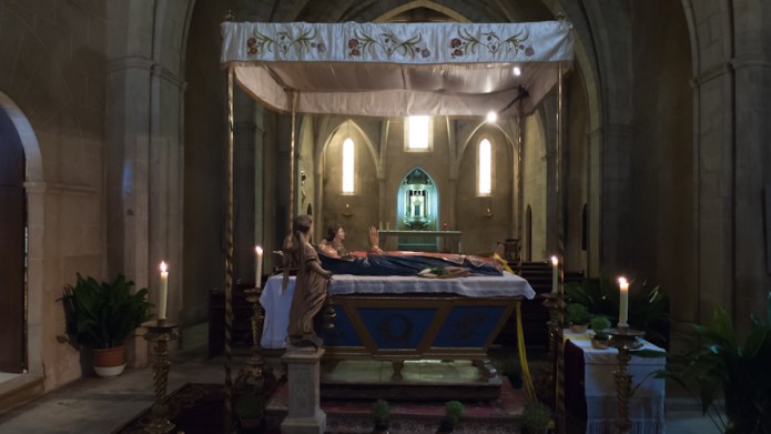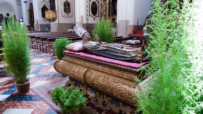 This year, some installations will be on display until August 22nd. The parish church in Santanyí will show its sleeping beauty (above) until August 21st, the parish church in Muro, until August 23rd, and the church in Alaró, until August 25th. In Palma, the exhibition at the Església de Sant Francesc comes to a close on August 22nd, as will the one at La Seu de Mallorca. An exhibition Mostra de la Mare de Déu d’Agost will be open at the Monestir de la Puríssima Concepció until August 23rd. A Funeral Procession of the Ascending Virgin will be held on August 22nd at 19h00 at the Església del Monestir de la Concepció.